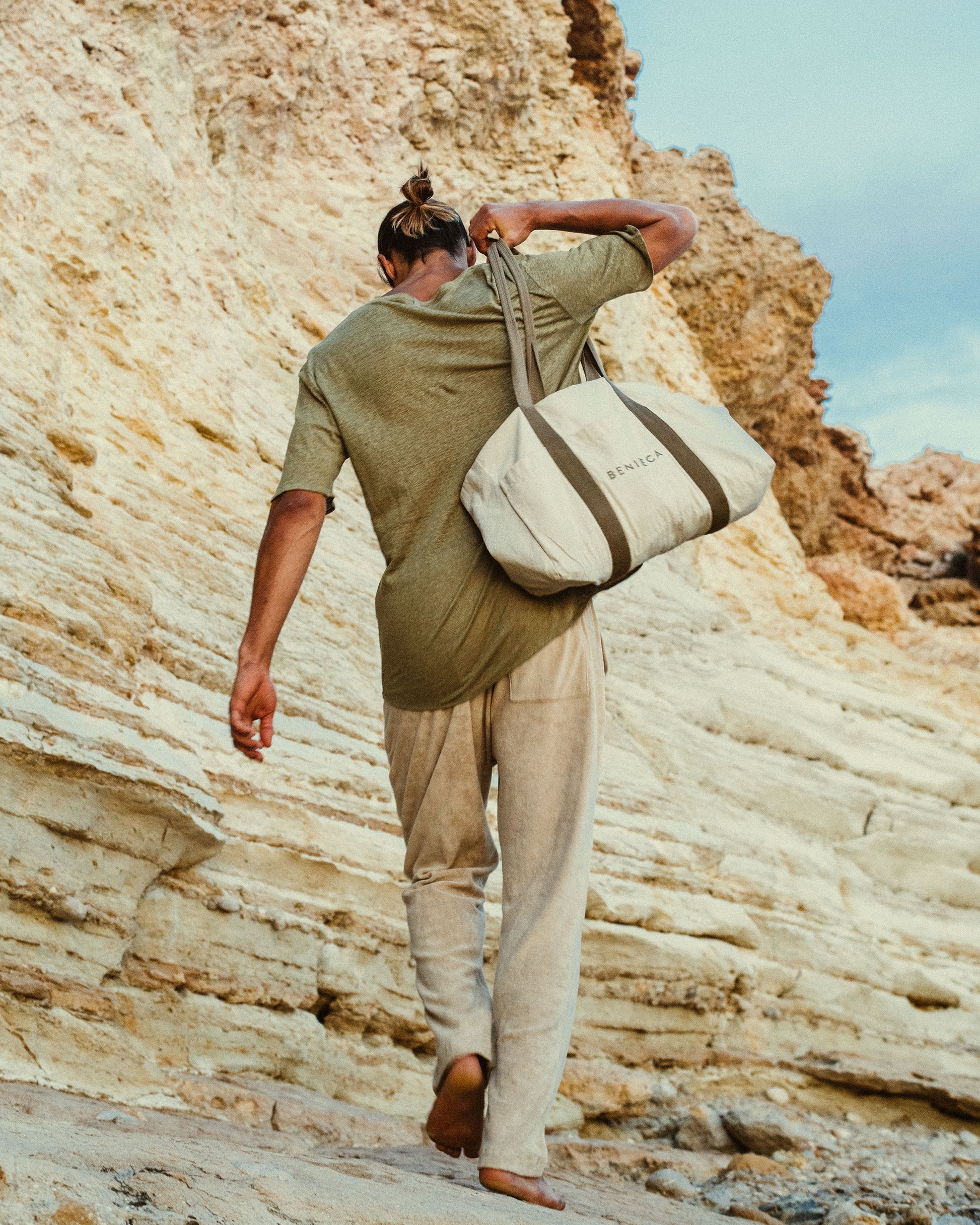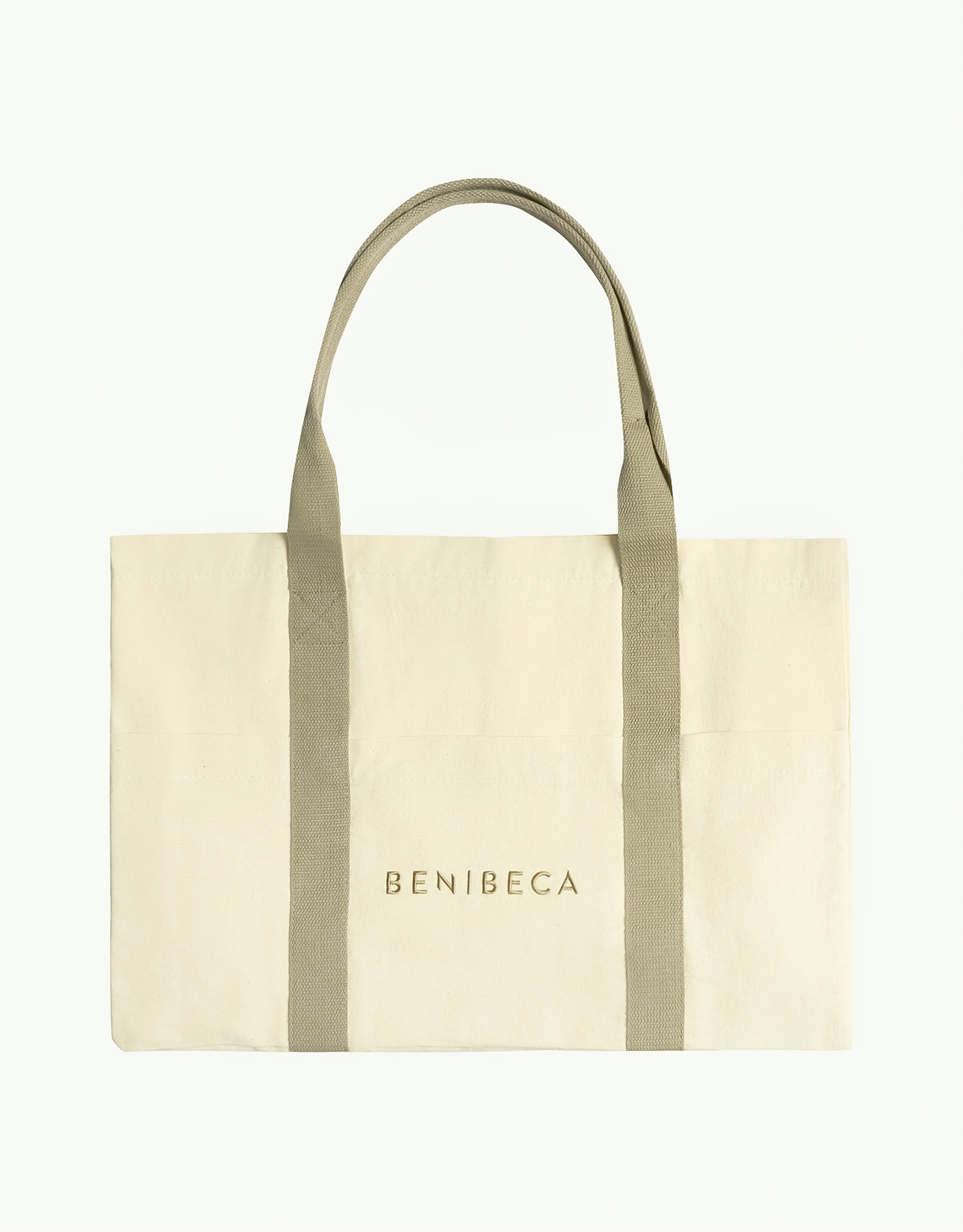 With generous dimensions of 47x34 cm, it’s the ideal companion for carrying everything you need, whether it’s for a relaxing day at the beach or a spontaneous getaway. Featuring the iconic Benibeca logo elegantly embroidered, it captures our essence: a blend of timeless elegance and a deep connection to nature.