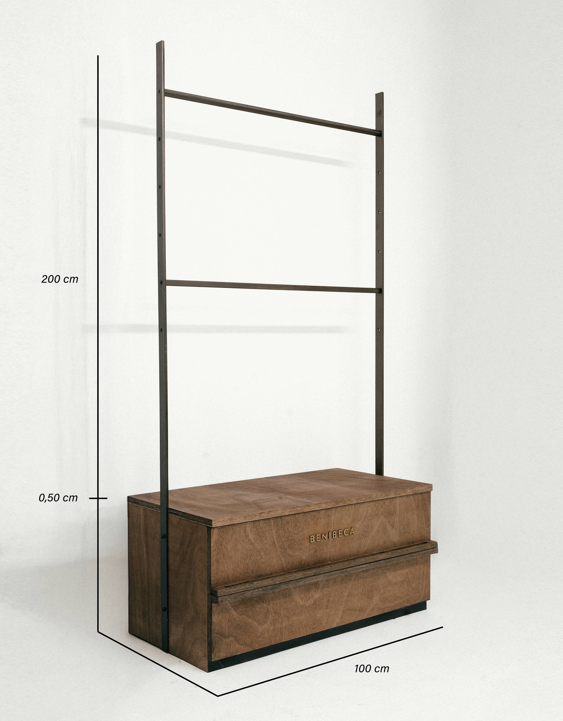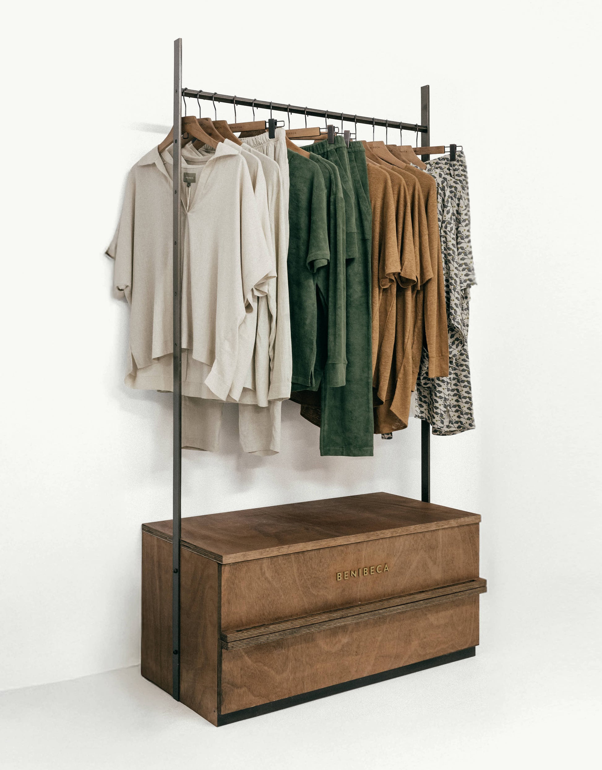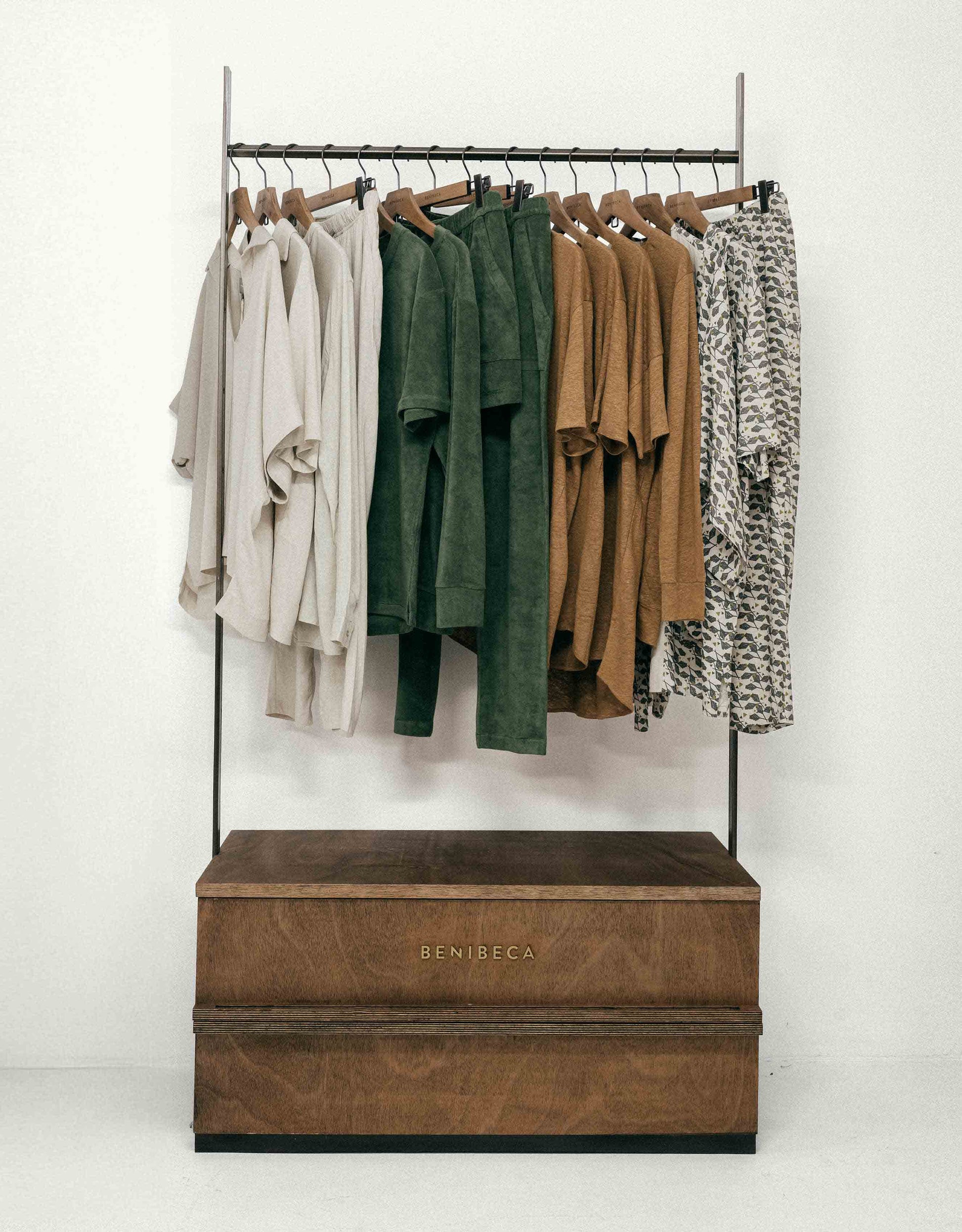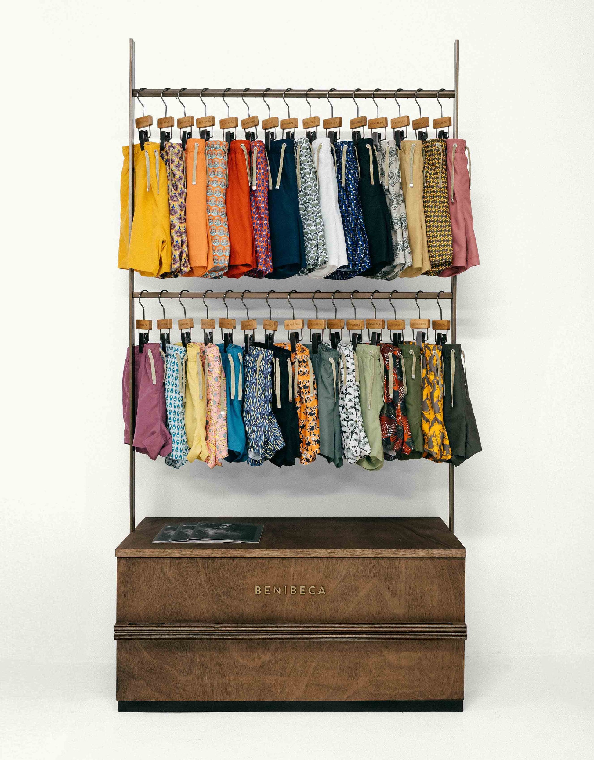 Each unit can be fitted with one or two horizontal bars — one bar to hang any garment from the Benibeca collection, or two bars to organize and display a large selection of swimwear efficiently.