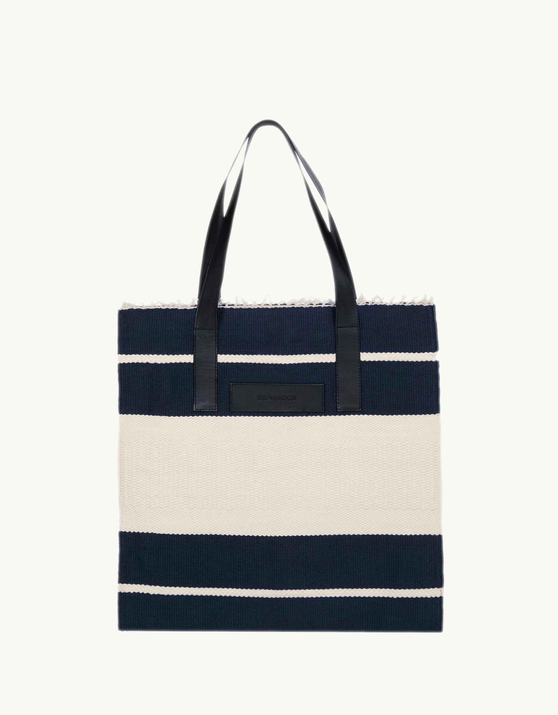 This two-tone tote, handmade in Peru, is our summer must-have. One of a kind, it celebrates craftsmanship with a cotton weave made on a traditional loom. With a robust and sophisticated design, the piece appeals to sensoriality through different textures and honors the authenticity of handwork by maintaining the loom ends.