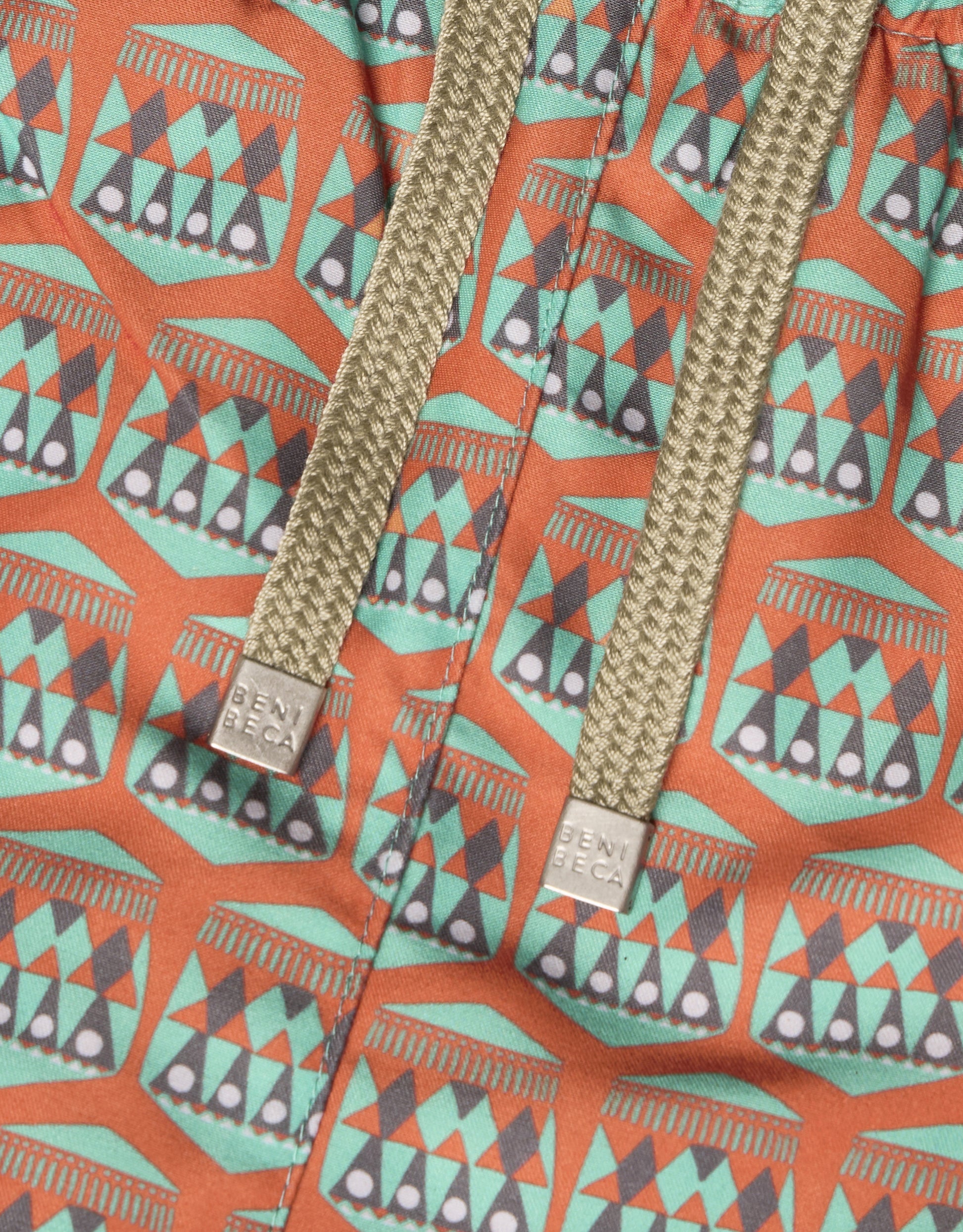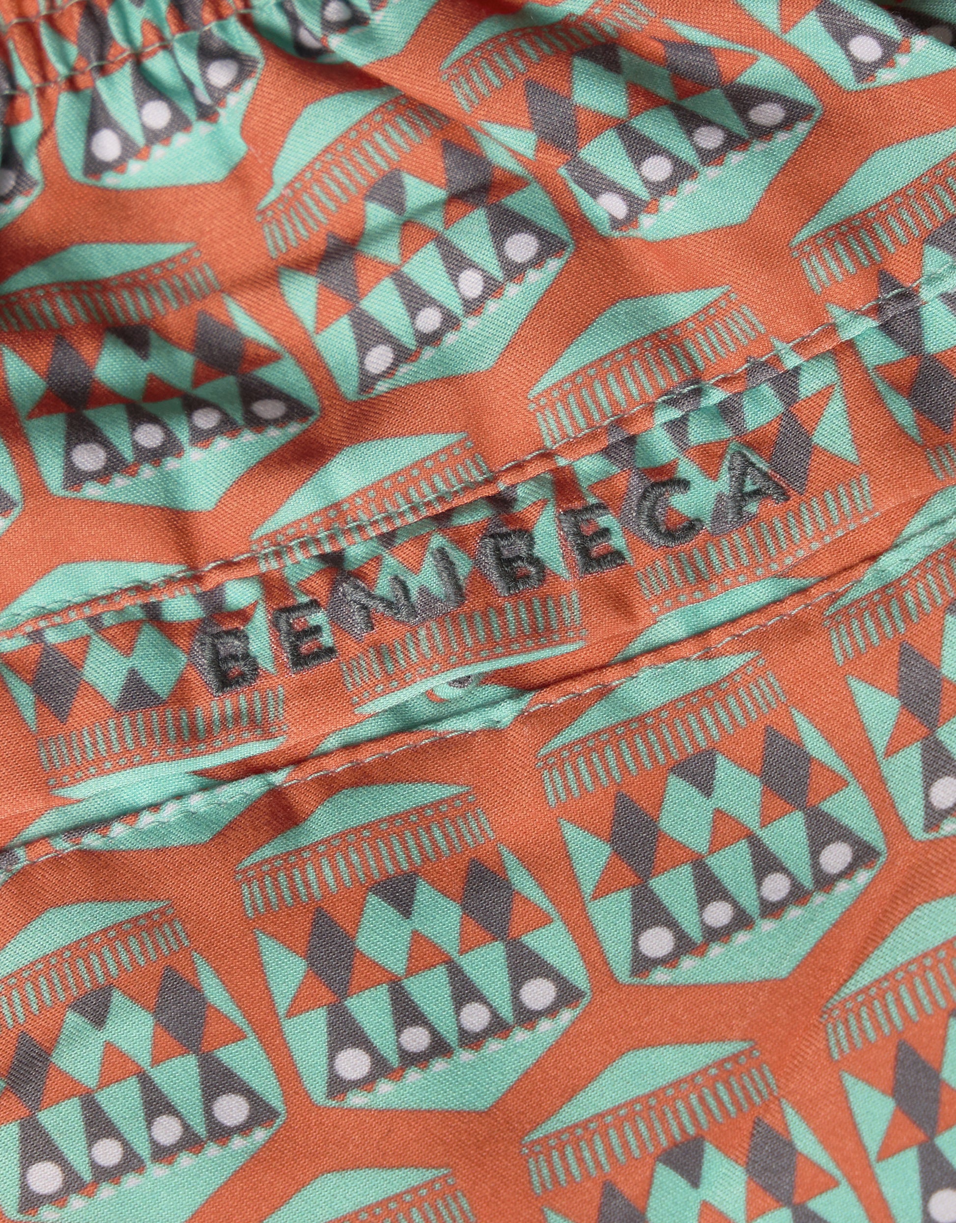 The classic mid-length short has become one of Benibeca's summer icons. It is the ultimate expression of relaxed luxury with a contemporary regular fit. The swim shorts are made from plastic rescued from the ocean and transformed into recycled polyester fibers. This sustainable and technological fabric is unique for its lightness, strength, quick drying time, and the softness of our "peach skin".