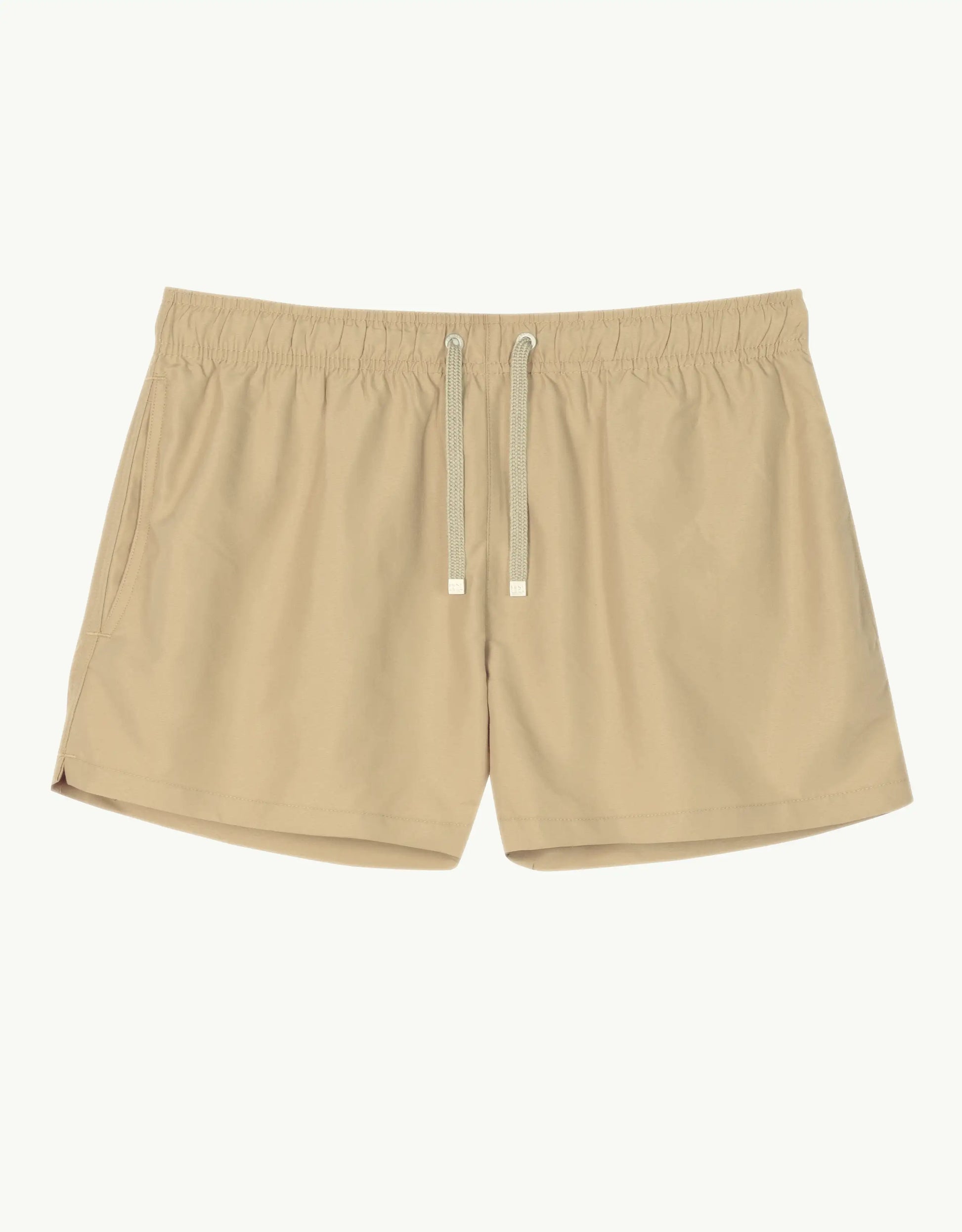 Our shortest short imprints the spirit of summer without filters. This go-to trunk to free the skin and show off tanned legs is made from plastic rescued from the ocean and transformed into recycled polyester fibers. This sustainable and technological fabric is unique for its lightness, resistance, quick drying time, and the softness of our "peach skin".