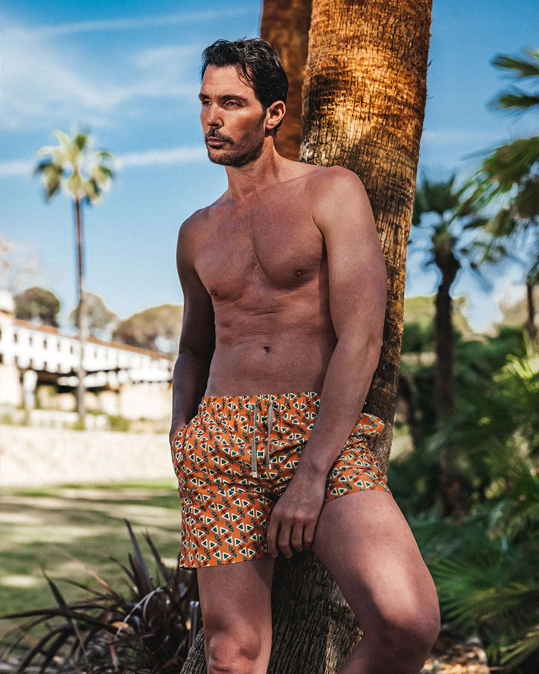 Developed exclusively for Benibeca, the fabric combines performance with a refined hand feel. Lightweight and quick-drying, it offers excellent resistance to sun, salt and chlorine, while maintaining a soft “peach skin” touch.