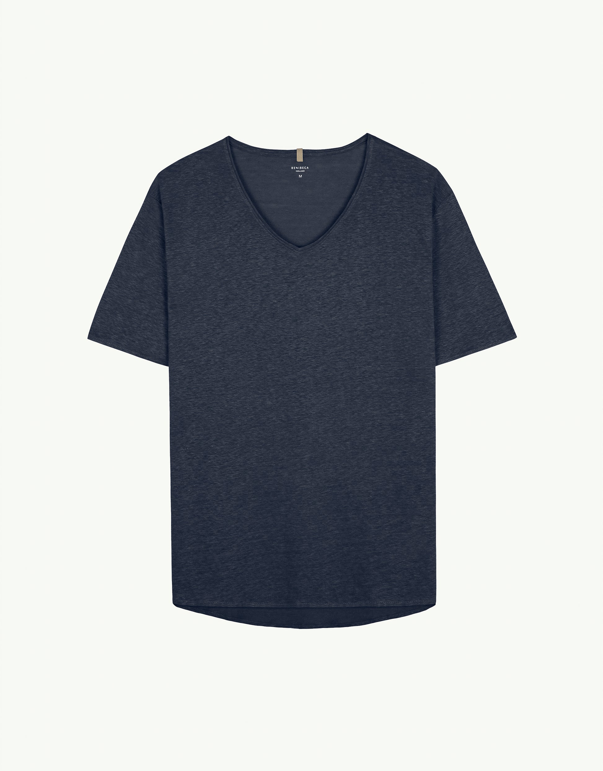 Layer up your holiday summer wardrobe with our versatile and breathable pure linen V-neck T-shirts with short sleeves. These best-selling styles are wonderfully lightweight with a semi-opaque knit and a bumpy, uneven, slubby texture. Employing a super-soft, lightweight fabric and loose silhouette, these linen tees have a luxurious feel and superb fit. Fresh, flexible, and beach-ready, they can be worn with any of our pants or swim shorts, combining beautifully with all our natural organic colour palettes.